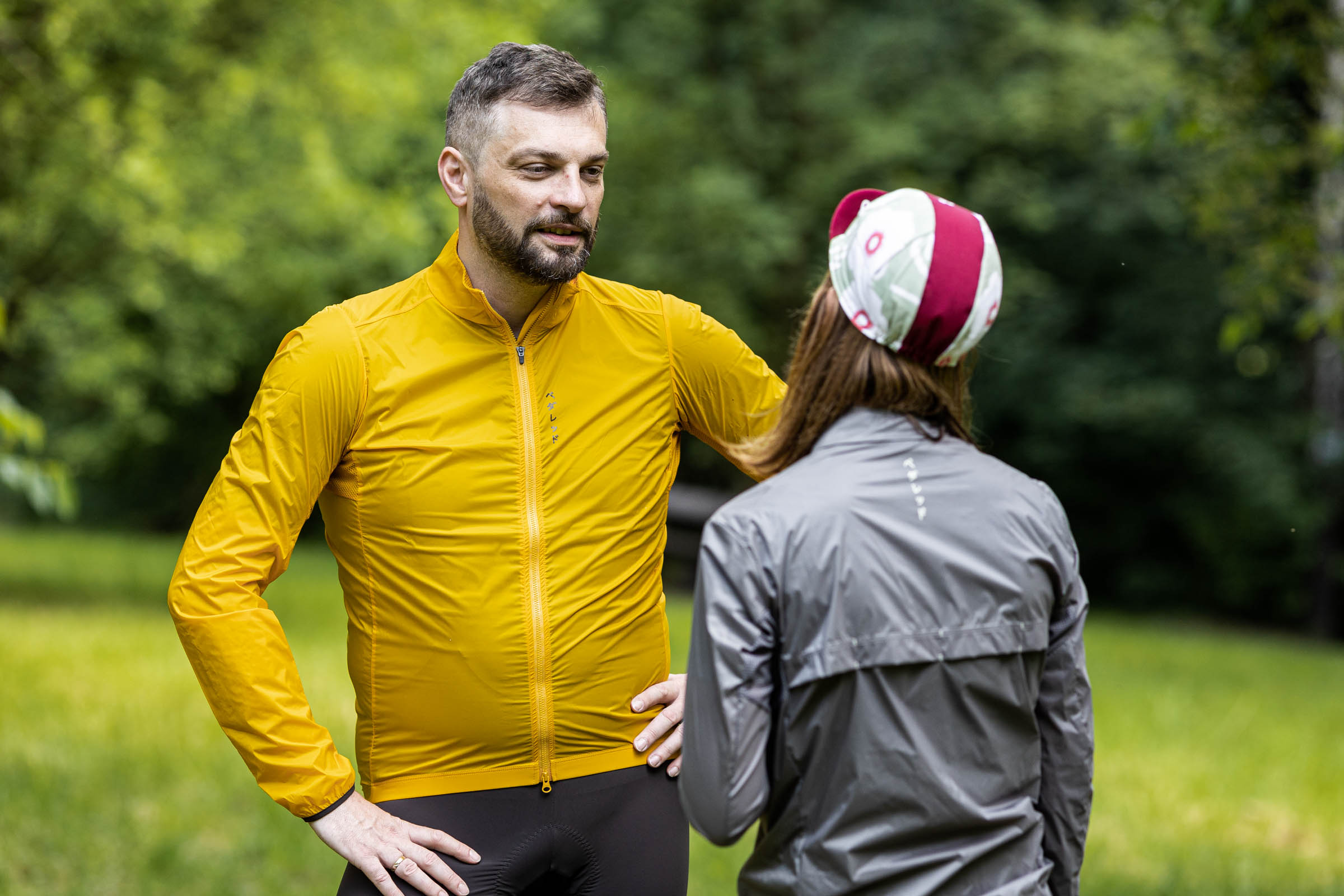 Lekka, łatwa do spakowania wiatrówka rowerowa, która zatrzymuje chłód, jednocześnie odprowadzając nadmiar ciepła i wilgoci.